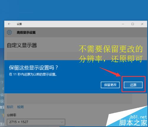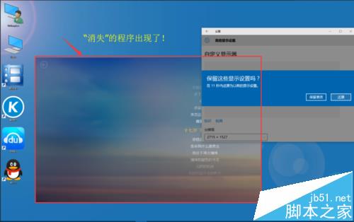 5、不需要保留本次设置的分辨率,选择“还原”。更改分辨率只是为了让系统重新调整桌面的程序位置,所以“消失”的程序又出现了。