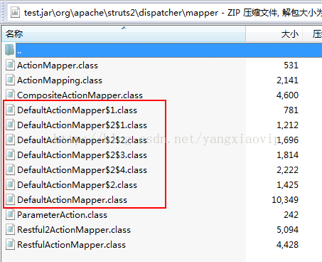 把这个新项目导出成jar包,把下图中的7个类,替换掉原先struts2-core-2.2.3.jar中的7个类