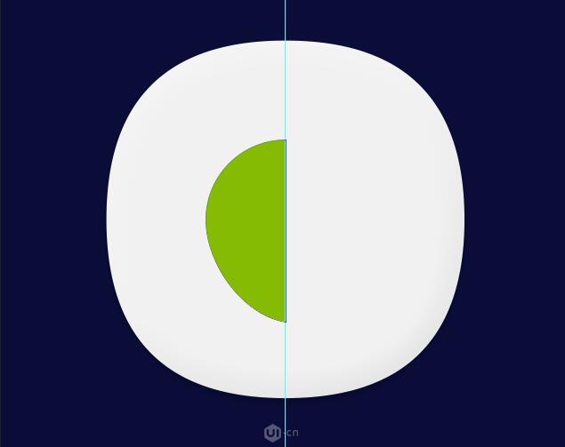 3、先把垂直参考线拉出来,用椭圆工具画一个180*180的正圆,填充颜色为#85bb03,