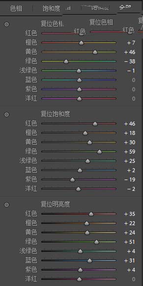 这里主要是调整面部肤色和校服的颜色,主导面部的颜色是橙色。由于原图面部发灰所以主要提升了橙色的饱和度,蓝色紫色调整的是校服的颜色,还原并突出校服。不建议大家死记数据,真正的颜色还是要靠自己的眼睛一点一点调整和对比,多多尝试。