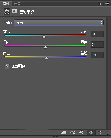 拉一条胶片的小S曲线,增加一点明暗和色彩的对比,让画面更加有质感。在色彩平衡中,高光的青色+3、蓝色+3让高光偏蓝,使画面更加通透。