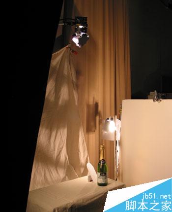 下一步是背景光.光源放在反光板背后,避免让灯光照射到瓶子.遮光板的形状如图...