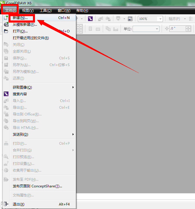 2、在CorelDraw X6界面上,点击左上角的“新建”,然后选择“新建”