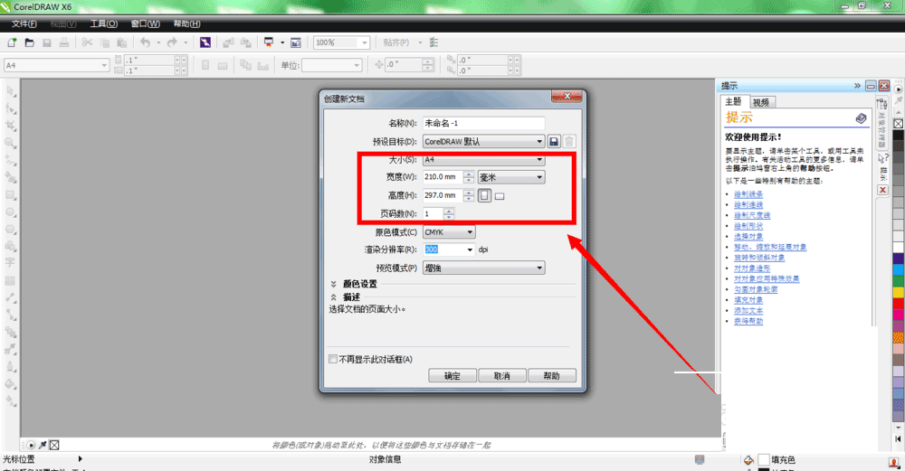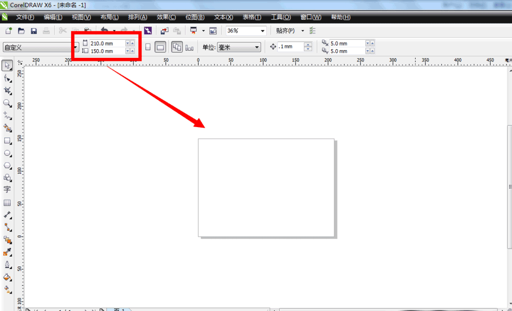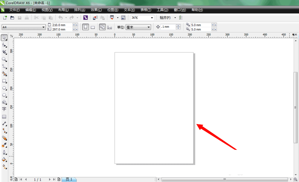 4、选择设置好以后,点击确定,就可以在CorelDraw X6软件界面上看到刚刚新建的页面了