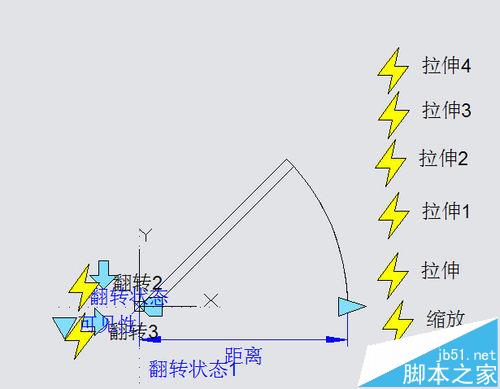1、动态块的夹点就更加多样化了,不同的动作都有不同的形状的夹点,此外还有可见性、查询列表的夹点,这里就不介绍定义方法,只是简单地看几种夹点的形式吧。可见性夹点可以通过下拉菜单选择图块不同的可见性状态,使图块呈现出不同的状态,如下图所示。