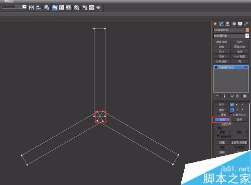 4、再然后,就得到三角形的矩形,选中一个矩形,转变为可编辑样条线——附加,将其他两个矩形附加在一起,如下图: