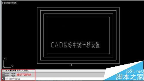 3、这种问题的处理方法是,在CAD的命令栏中输入“mbuttonpan”并回车;如下图