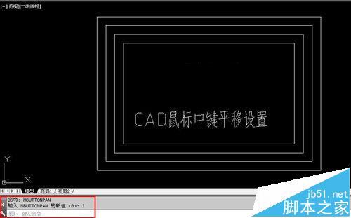 4、命令行提示“MBUTTONPAN输入MBUTTONPAN的新值(0)”,这时输入“1”然后单击回车