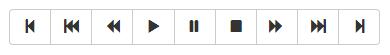 <div class="btn-group"> <button type="button" class="btn btn-default"><span class="glyphicon glyphicon-step-backward"></span></button> <button type="button" class="btn btn-default"><span class="glyphicon glyphicon-fast-backward"></span></button> <button type="button" class="btn btn-default"><span class="glyphicon glyphicon-backward"></span></button> <button type="button" class="btn btn-default"><span class="glyphicon glyphicon-play"></span></button> <button type="button" class="btn btn-default"><span class="glyphicon glyphicon-pause"></span></button> <button type="button" class="btn btn-default"><span class="glyphicon glyphicon-stop"></span></button> <button type="button" class="btn btn-default"><span class="glyphicon glyphicon-forward "></span></button> <button type="button" class="btn btn-default"><span class="glyphicon glyphicon-fast-forward"></span></button> <button type="button" class="btn btn-default"><span class="glyphicon glyphicon-step-forward"></span></button> </div>