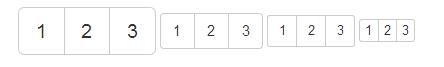 <div class="btn-group btn-group-lg"> <button type="button" class="btn btn-default">1</button> <button type="button" class="btn btn-default">2</button> <button type="button" class="btn btn-default">3</button> </div> <div class="btn-group"> <button type="button" class="btn btn-default">1</button> <button type="button" class="btn btn-default">2</button> <button type="button" class="btn btn-default">3</button> </div> <div class="btn-group btn-group-sm"> <button type="button" class="btn btn-default">1</button> <button type="button" class="btn btn-default">2</button> <button type="button" class="btn btn-default">3</button> </div> <div class="btn-group btn-group-xs"> <button type="button" class="btn btn-default">1</button> <button type="button" class="btn btn-default">2</button> <button type="button" class="btn btn-default">3</button> </div>