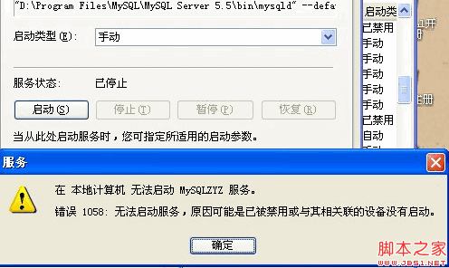 今天研究一个框架,数据库使用mysql,启动mysql服务的时候报1058错误,如下图。