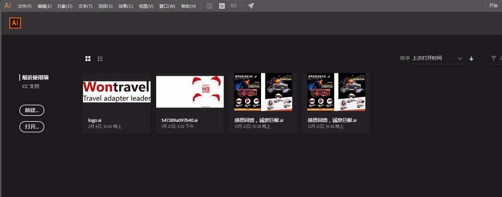 1、AI 2018新版本打开的时候有最近打开的记录,方便我们查找文件的烦恼;