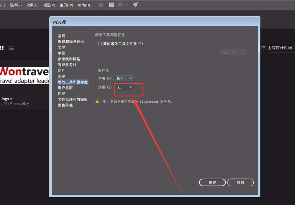 6、再选择次要的暂存盘;
