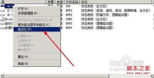 回到磁盘管理器,然后右键单击A盘,在打开的右键菜单中,选择格式化,这样就可以对优盘进行格式化了。看看你的问题解决了没有,如果没有解决,继续下面的方法。