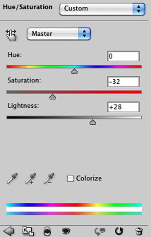 点击图层>新建调整图层>色相饱和度。这个调整图层在所有图层的上面。降低饱和度到-32,亮度增大为+28。