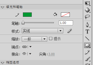1、选择椭圆工具,设置笔触颜色为绿色,填充颜色为无,画出一个椭圆,结果如下所示: