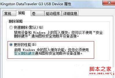 6.在弹出的菜单中切到策略一栏,勾选更好的性能,确定退出即可。