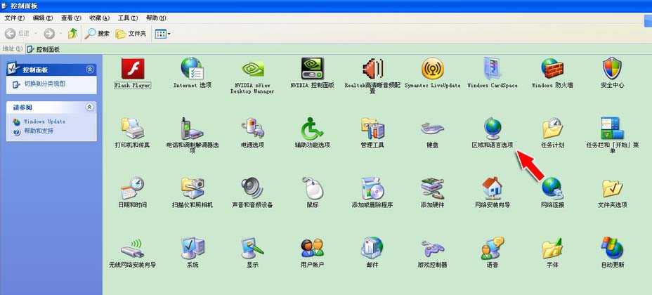 2、在“控制面板”中找到“区域和语言选项”,双击打开。