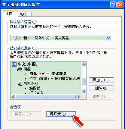 4、在出来的“文字服务和输入语言”中,选择“键设置”
