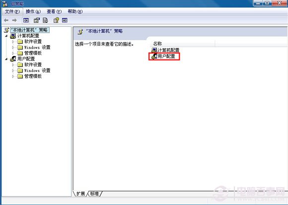 2,在打开的窗口右侧选“用户配置”,如下图。