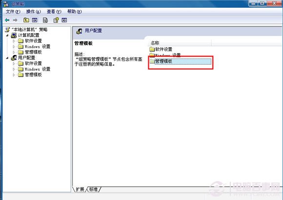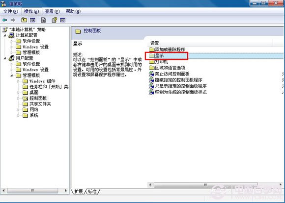 3、依次点开“管理模板”、“控制面板”、“显示”如下图。