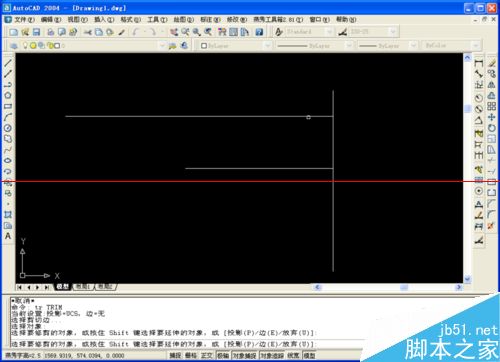 3、延伸——输入tr——按空格键(指针变成小方框)——再按空格键——按住shift——方框移到需要延伸的线上——单击——松开即可。