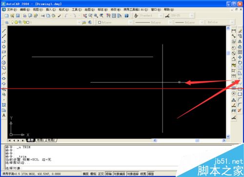 1、首先输入tr——按空格键(指针变成小方框)——再按空格键——小方框放到需要修剪的线上——单击。