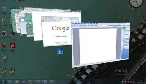 4、通过按下windows键+Tab键可实现网页3D切换效果,装逼必备噢。