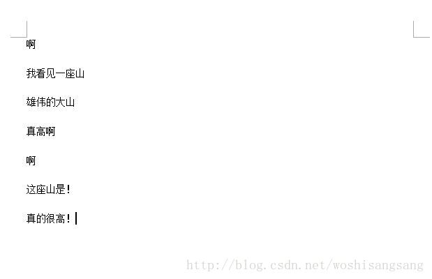 ================ RESTART: F:/360data/重要数据/桌面/学习笔记/readWord.py ================ 段落数:13 啊 我看见一座山 雄伟的大山 真高啊 啊 这座山是! 真的很高! 第0段的内容是:啊 第1段的内容是: 第2段的内容是:我看见一座山 第3段的内容是: 第4段的内容是:雄伟的大山 第5段的内容是: 第6段的内容是:真高啊 第7段的内容是: 第8段的内容是:啊 第9段的内容是: 第10段的内容是:这座山是! 第11段的内容是: 第12段的内容是:真的很高! >>>