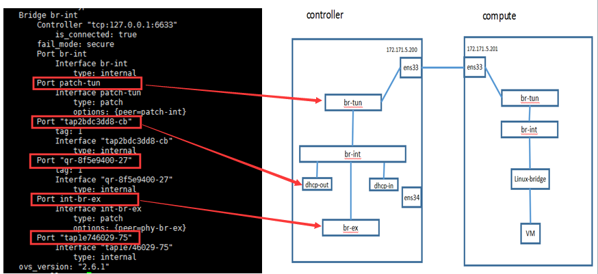 如下图所示,分别是controller与compute节点的br-tun分析。