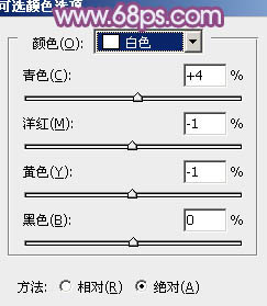 15、创建可选颜色调整图层,对红,白进行调整,参数设置如图42,43,确定后把图层不透明度改为:50%,效果如图44。这一步微调图片主色及高光部分的颜色。