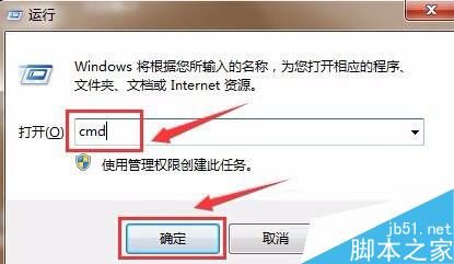 1、用组合快捷键“win+r”键打开运行窗口,输入“cmd”回车确认,如图: