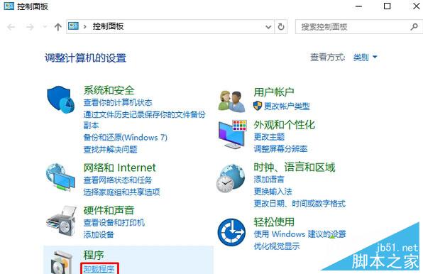 2、将控制面板的查看方式修改为“类别”,点击程序下面的“卸载程序”;