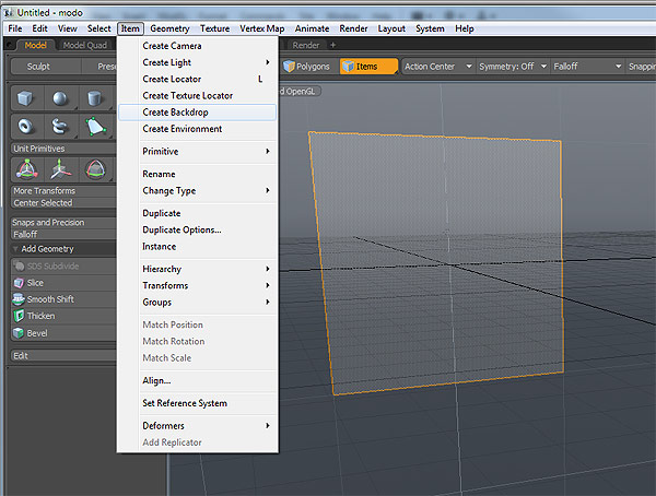 执行 项目>创建背景幕 。这会创建一个平面,来添加我们刚才保存的图像。