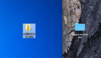 6、注销成功以后,重新登录系统,你就会发现在虚拟机中的桌面上会显示 Mac 主机桌面上的文件。我这里在 Mac 上新建了一个名为“虚拟机文件夹共享测试”的文件,创建好以后,立即就会出现在虚拟机 Windows 系统的桌面上。同样地,当你在虚拟机系统的桌面上创建一个文件时,也会在 Mac 上显示。