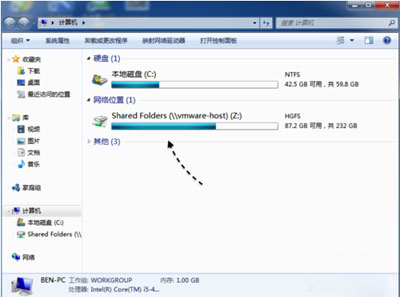10、接下来我们在虚拟机中打开“计算机”窗口,可以看到一个有共享标识的 Share Folders 目录,请点击打开。