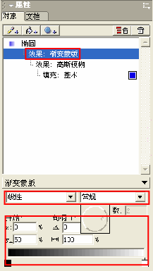 4.继续调节小圆,给它加渐变蒙版产生向上的渐变透明.可以通属性面板的的数值或调节它的控制柄来调节渐变通明的方向和程度,因为默认的是从左到右的渐变透明,我认为手动调节比较直观!