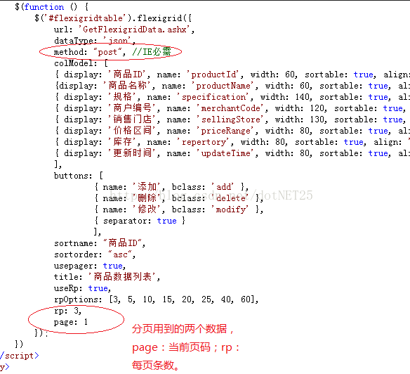 另外,flexigrid不是不可以使用“post”方式发送数据,而是“post”方式在IE下必须要有供post的数据,比如在分页的时候可以使用post方式,而在你没有什么数据要发送的话,一定要使用“get”方式,其它浏览器可能对这个要求不严格,而IE要求较严: