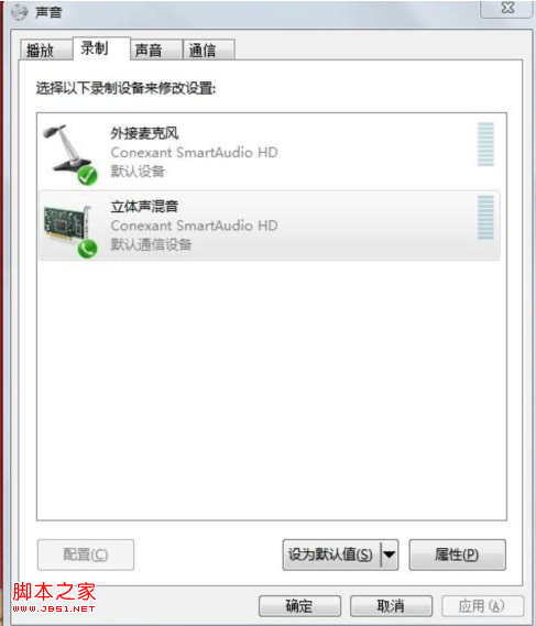 如果你有“立体声混音”,那就点右键,将它设为“默认通信设备”(见上图)。