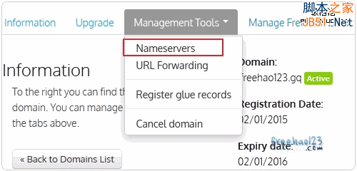1、在Freenom域名管理系统中“My Domain”可以看到自己已经注册的域名,点击“管理”进入域名管理中心。(点击放大)