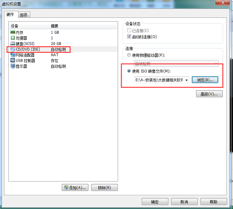 click the centOS 64 hadoop-master,we set the os install cd/DVD Path->