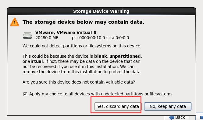 we choose Yes,discard any data->next->