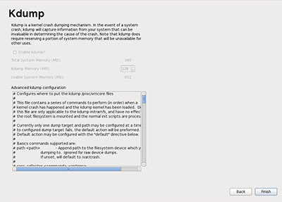 if you get error in the Kdump step neglect it and click finish->