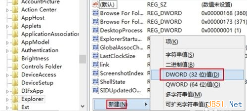 4、在右边空白地方右击,选择“新建”下的“DWORD值”: