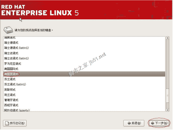 点击“Next”,进入键盘选择界面,选择默认“美国英语式”即可,如图5所示。