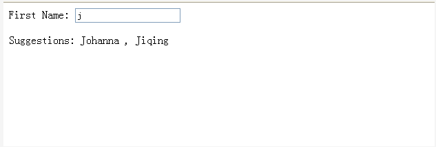 当输入j后,会触发ajax效果,从后台获取相应的名字中带有j的数据,并展示在suggestions中。