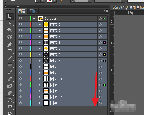 4、接着选中这些图层,向下拖动,不再是object的子图层,object图层变为空白可以删除,然后保存文件