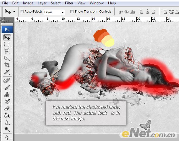 19.添加两个新层命名为“阴影”和“照明”,在人物身体上方和周围绘制光和阴影。