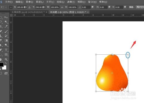 利用椭圆选框结合魔棒 添加选区 将梨子选中 然后拖动到新建文件