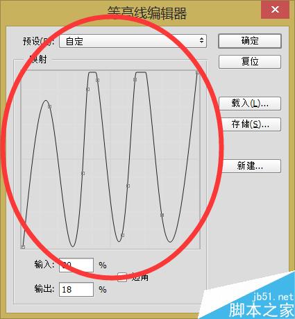 6、在品质那里选择等高线,在打开的窗口调整曲线如图